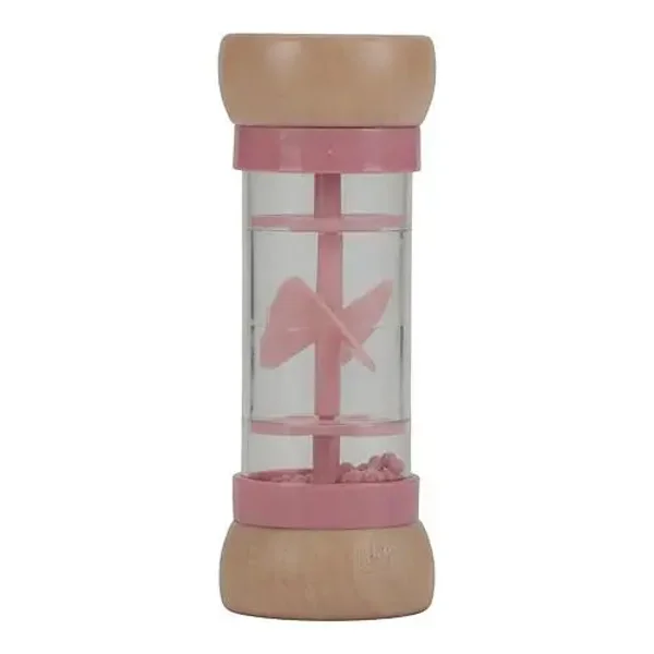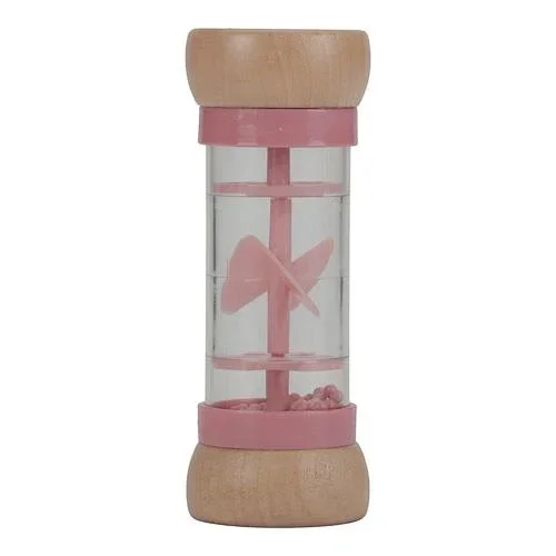Door de regenrammelaar om te draaien ontstaat er een rustgevend geluid van de balletjes die van de ene kant naar de andere kant bewegen. De balletjes vallen door kleine openingen en gaan langs een propellor, wat een aangenaam geluid veroorzaakt.